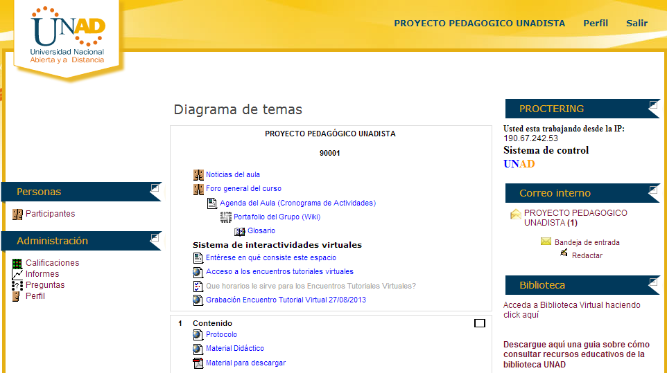 Una vez realizado los pasos recomendados anteriormente, puedes ingresar a tus cursos en el campus virtual e identificar los principales apartados, como son: